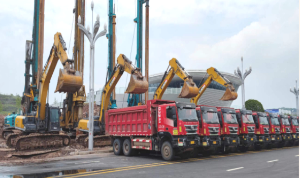 6月24日,二手機交易中心的8臺30噸以上租賃設備助陣建設高新區金鳳城市中心一期二標段EPC工程項目,大噸位挖掘機租賃重磅“群發”。